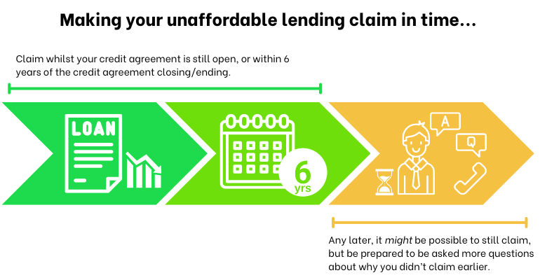 The time limit rules are not clear-cut and can be open to some interpretation. If you have made an unaffordable lending claim before, you may have experienced the lender saying that the claim has been made too late. You may have received a letter from the lender including this kind of wording: